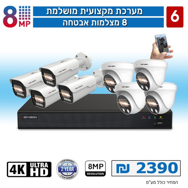 ⇐ שמונה מצלמות מקצועיות פנימיות או חיצוניות לבחירה